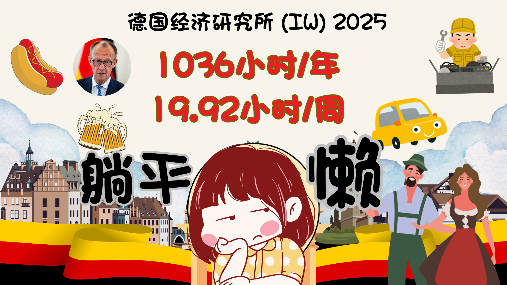 一提起德国,很多人脑海中首先浮现的可能是香肠、啤酒和汽车,还有那些严谨勤劳的德国工匠们。然而据德国经济研究所(IW)最新的研究报告显示:德国人平均每周的工作时间居然不足20个小时 。这条消息一出,连新上任的总理梅尔茨都忍不住抱怨德国人实在是太懒,呼吁大家重拾奋斗精神。