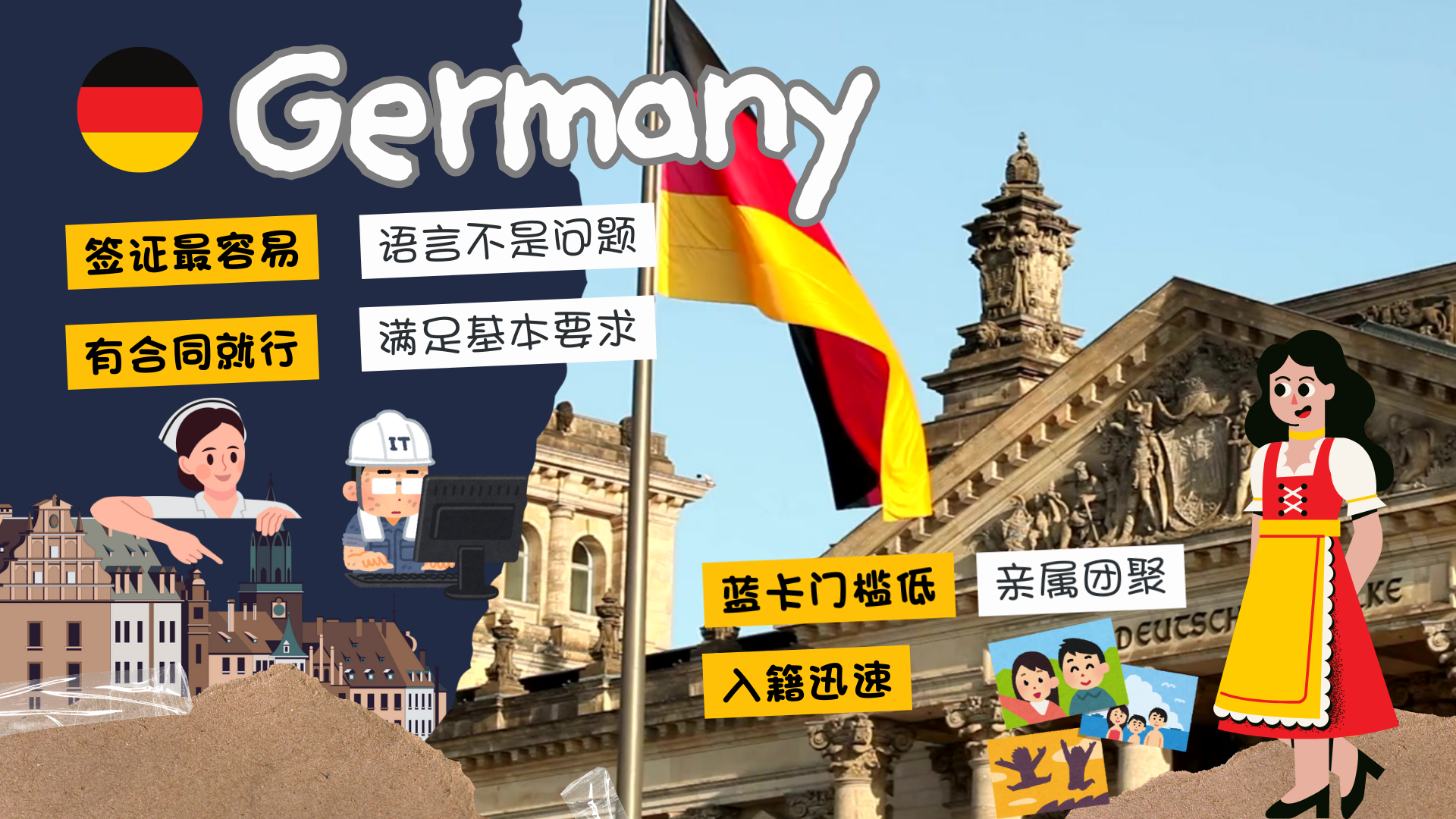 签证容易、路子清晰,想来就能来 可能很多人可能不知道,德国是欧盟国家中最容易获得工作签证的。即使你不是德国高校毕业,甚至不会德语,只要你有一份德国的工作合同,学历或相关经验符合要求,就可以直接申请工作签证,毫无障碍地过来。特别是对于技术类人才,例如 IT、工程、医学、护理、科研等领域,德国的大门随时为你敞开。此外,在德国申请“欧盟蓝卡”也非常容易,只要年薪达到一个相当低的门槛(2025年大约43800欧元/年,紧缺行业还会更低)就可以直接申请。蓝卡持有者的家属不仅可以随行并直接工作,还能更快地在几年内转为长期居留,甚至最快三年内就能申请德国国籍。这对很多想换生活环境、追求稳定的人来说,无疑是极具吸引力。