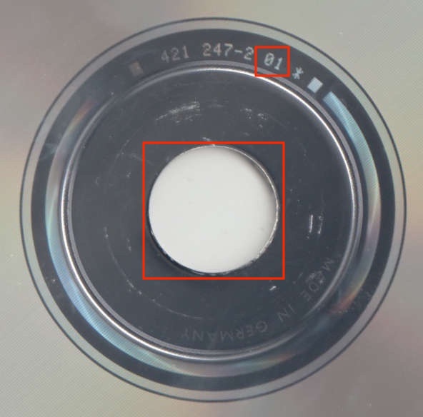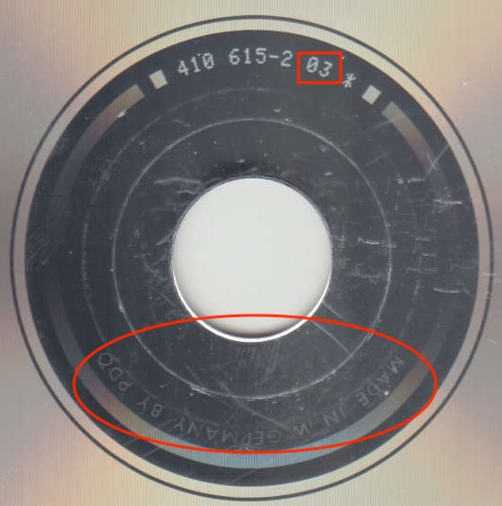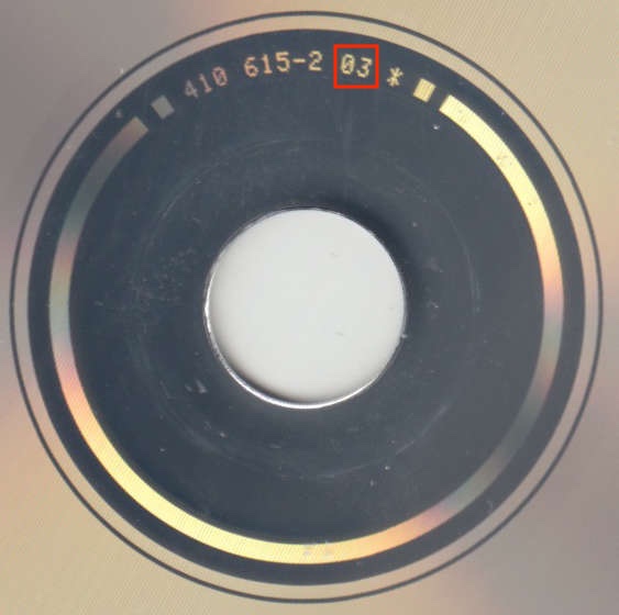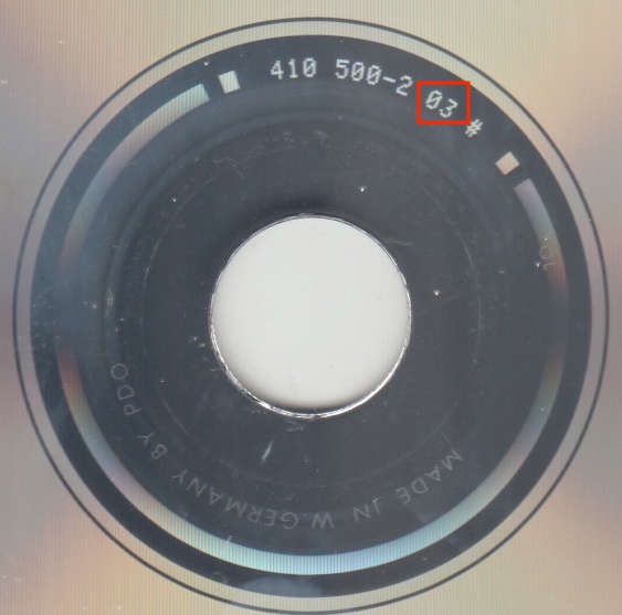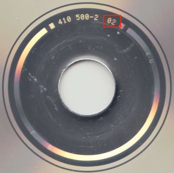 既然我们已经了解了首版和再版的定义,那么如何准确判断一张专辑是否属于真正的首版,就成为了一个关键问题。众所周知,1982 年是 CD 诞生的元年,在这一时期发行的 CD 主要采用满银圈或半银圈工艺,有收藏爱好者习惯性地将满银圈 CD 视为首版。然而这种判断方式并一定准确。虽然满银圈确实是早期 CD 的典型特征之一,但并非所有满银圈 CD 都是最初的发行版本。以烤肠收藏的这张巴赫《勃兰登堡协奏曲》(编号 410 500-2 A|H)为例。从外观来看,它似乎符合首版 CD 的所有典型特征:满银圈工艺、盘面印有 “Made in W. Germany by PolyGram”,并且属于 Archiv Produktion 系列的早期版本。然而当我拿出另一张外观几乎相同的 CD 就会难以区分,然后如果仔细检查矩阵码区域,我们便会发现二者的区别:左侧专辑编号后紧跟着一串数字编码 03,而右侧光盘的编号则为 02。这串数字至关重要,因为它表示了制作光盘时使用的母盘版本。在这个例子中,左侧光盘使用了第三版母盘,而旁边的另一张 CD 则由第二版母盘制作而成。我们可以很容易的推断出,母盘编号为 02 的 CD 发行时间较早。这个例子就可以清楚地说明,在判断一张 CD 是否属于首版时,满银圈虽然是重要的参考因素,但决定性的信息往往隐藏在矩阵码中。因此,在收藏专辑时,仅凭外观判断显然不够,深入研究矩阵码,才是识别真正首版 CD 的可靠方法。