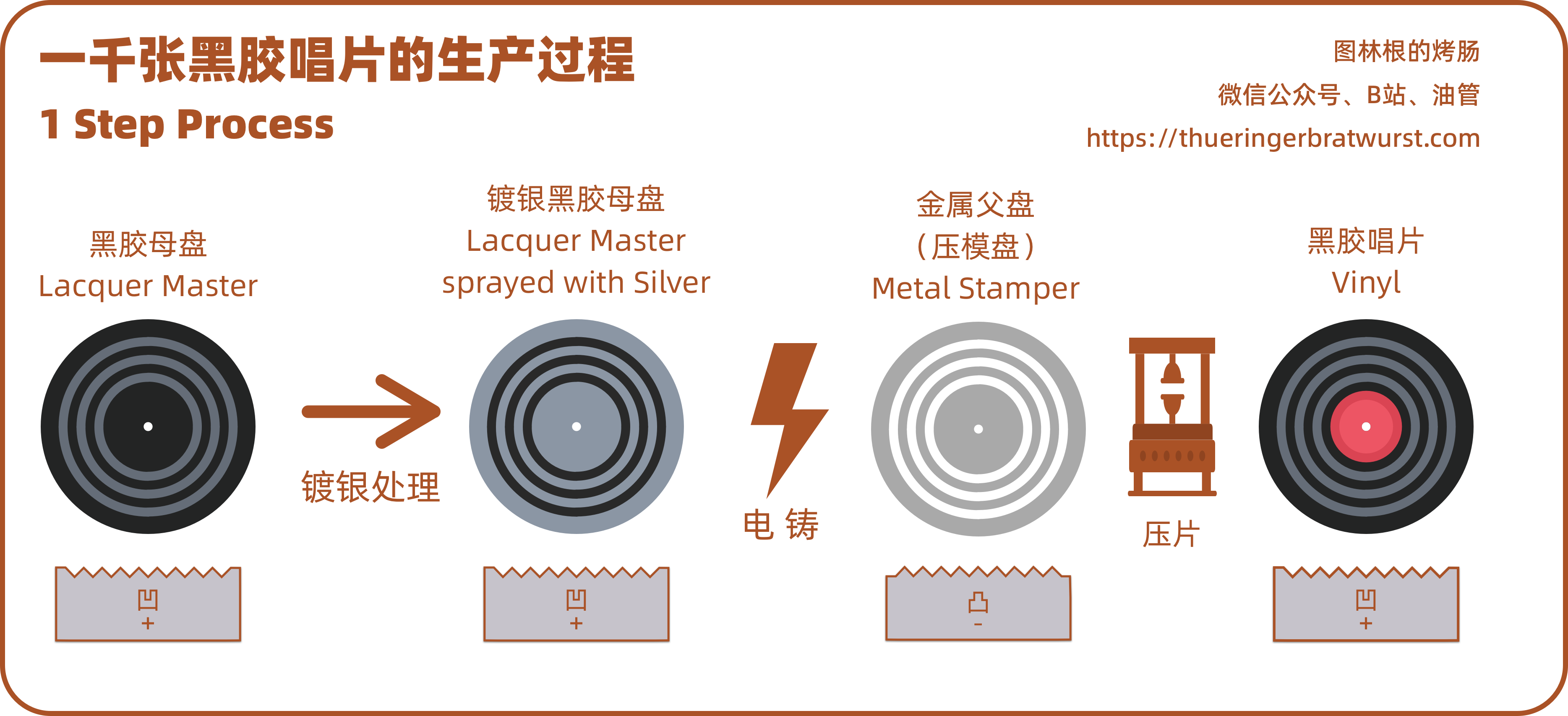 大家好,我是图林根的烤肠。此前我曾翻译过一系列由德意志留声机(Deutsche Grammophon, 简称 DG)发布的有关黑胶唱片的视频,这些珍贵的影像资料清晰呈现了世界顶级唱片公司是如何制作黑胶母盘的。但你是否曾好奇过:那些珍藏于母带中的声音,究竟是如何一步步转化为可以播放的唱片呢?而黑胶爱好者口中的 首版(First Pressing) 又究竟意味着什么?相信在深入了解完整个黑胶唱片的制作流程后,这些疑问都将迎刃而解。那么就请跟随烤肠我,一起走进黑胶唱片制作的每一个关键环节,揭开这场声音刻录的神秘面纱。