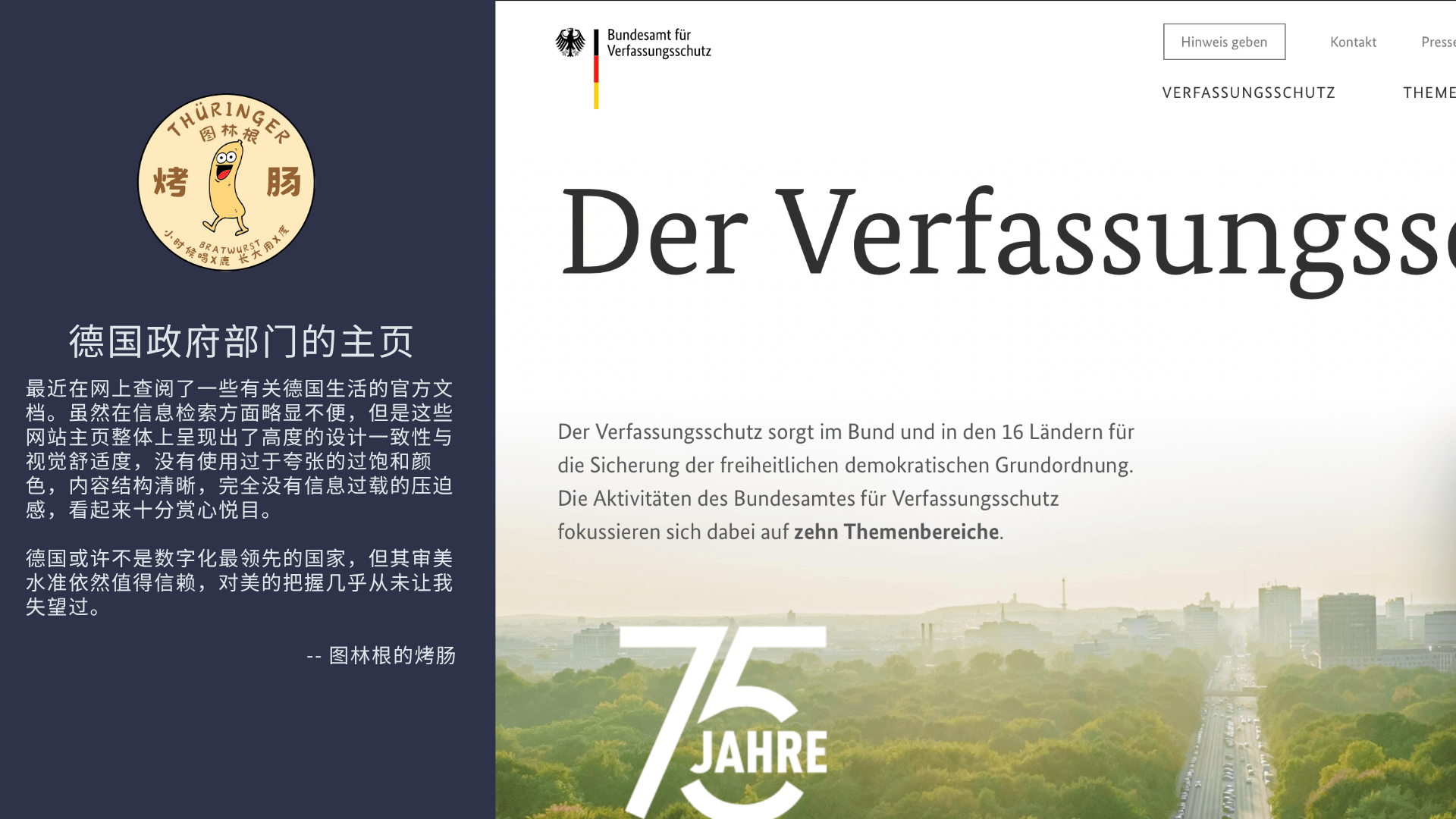 最近在网上查阅了一些有关德国生活的官方文档。虽然在信息检索方面略显不便,但是这些网站主页整体上呈现出了高度的设计一致性与视觉舒适度,没有使用过于夸张的过饱和颜色,内容结构清晰,完全没有信息过载的压迫感,看起来十分赏心悦目。