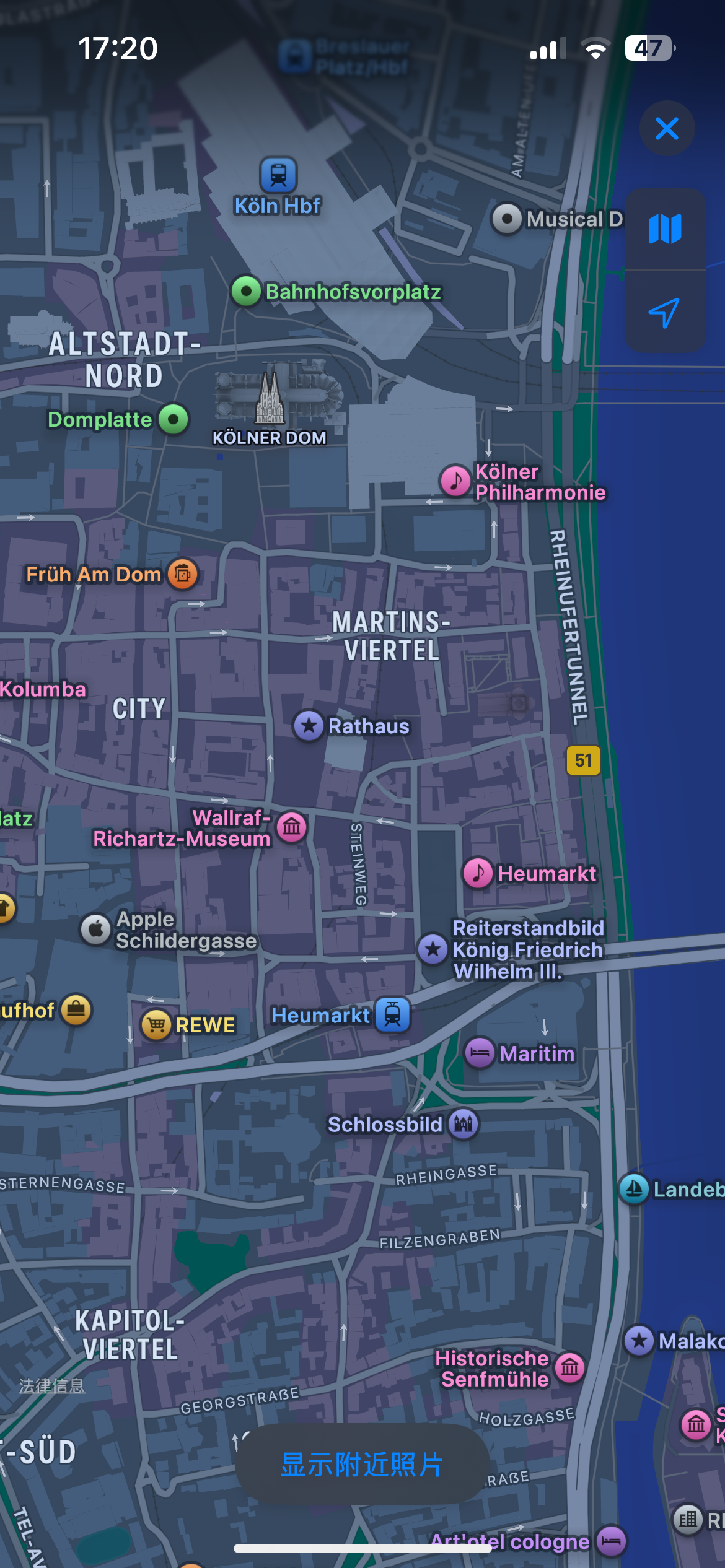 地点在第二张图片的位置,坐火车的话可以在 Deutz/Messe 下车,或者 Heumarkt 下车后过了桥步行就可找到。