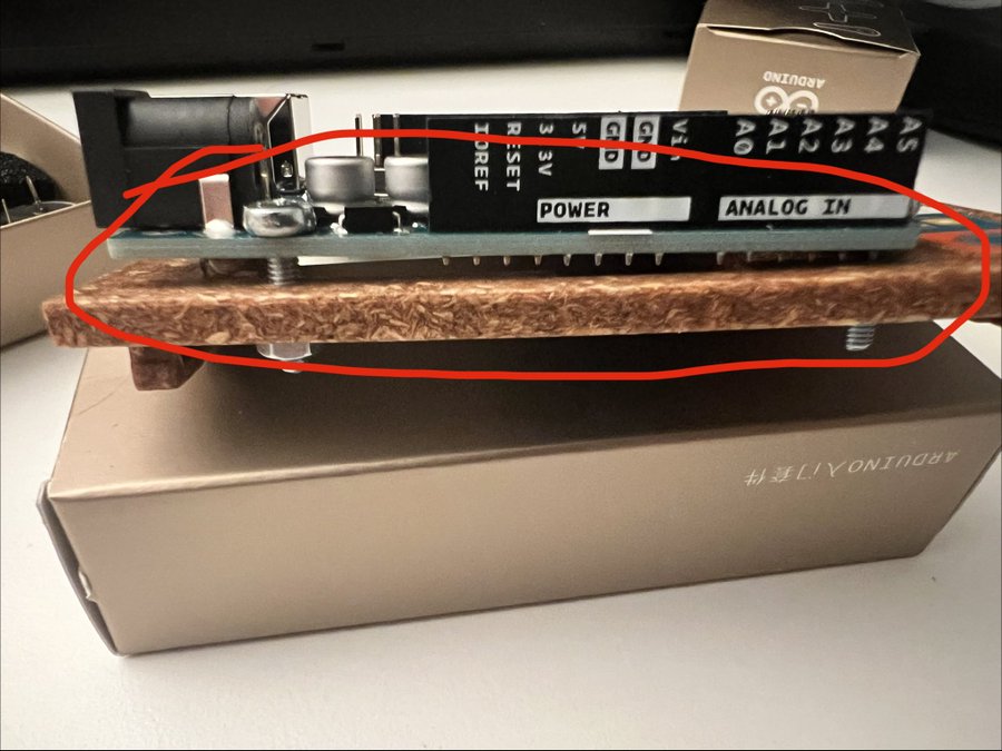 不亏是意大利🇮🇹,Arduino 只给了我三个螺母,UNO 板子放平后,我也只能这么拧了,要是六个我还能垫高一下。这么大的翘起部分都能忍,看来当地人民对它精度的要求确实不高。我这要是打上 made in Germany🇩🇪,早就得让人骂死哈哈哈🤣🤣🤣